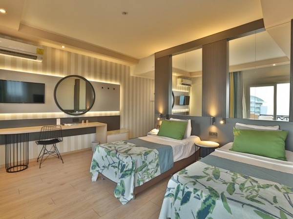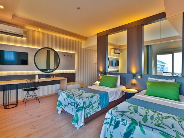 Szállás leírás: Az 5*-os, 2022-ben megnyitott, főépületből és 4 melléképületből álló, összesen 262 szobával rendelkező szálloda közvetlenül a homokos-kavicsos tengerparton helyezkedik el.