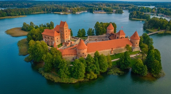 Reggeli után elhagyjuk Lengyelországot és Litvániába utazunk. Első programunk Trakai mely az ország egyik leglátványosabb területe. Gyönyörködünk a tájban, melyet 61 tó színesít. Nézelődésünk során érzékeljük, hogy egész vidék nyugalmat áraszt. Megtekintjük a várat, melyet szintén egy tó ölel körbe. Programunk befejezése után folytatjuk utunkat a fővárosba, Vilniusba, ahova a kora esti órákban érkezünk. Elfoglaljuk szállásunkat. Lehetőség van arra, hogy ha valaki akarja, repülővel utazva ezen a napon Vilniusban/ Varsóban csatlakozik a csoporthoz. A repülés és megérkezés után a transzfer irodánk szervezésében, de egyénileg történik. Hogy melyik városba lesz lehetőség csatlakozni a csoporthoz, illetve a konkrét program Irodánk web oldalán olvasható. A fakultatív vacsora után esti séta a litván fővárosban.