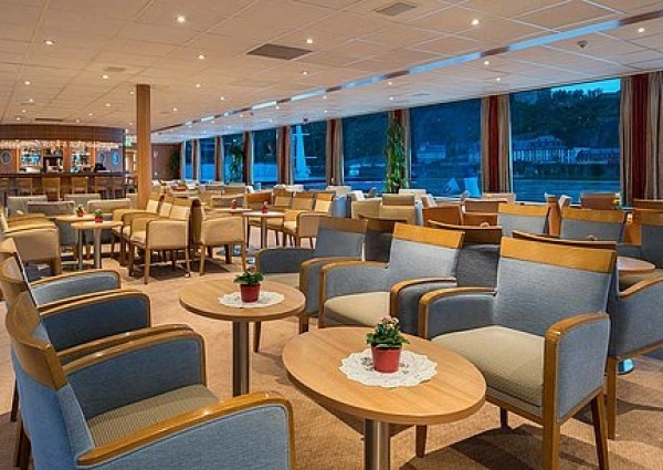 Az MS Rhein Symphonie klasszikus folyami hajó. Kényelmes terek, stílusosan berendezett kabinok várják a fedélzetre lépőket.