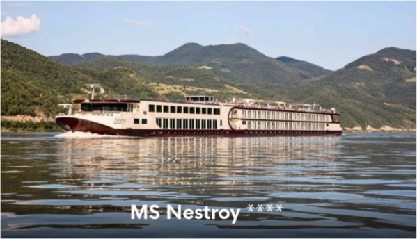 MS NESTROY ****Az MS Nestroy 2007-ben épült, majd 2017/2018 telén teljes felújításon esett át, így modern külsőt kapott. 2024 tavaszán egy további felújítás részeként minden kabint kényelmes dupla ágyakkal szereltek fel. A hajó svájci zászló alatt hajózik, és az "SCI-Swiss Cruises International Kreuzfahrten AG" hajózási társaság üzemelteti. Az utak szervezője a GTA Skyways. A tetőtől a víz felszínéig az MS Nestroy magassága 6 m, merülése pedig 1,55 m.2021-ben nyitott meg a szabadtéri grill étterem, a Grillereit, a napozóteraszon. Érdekes előadásokra és kellemes, zenei kísérettel töltött estékre számíthatnak. A kabinfedélzetek között kényelmes lift közlekedik. A legfelső fedélzeten napozóágyak és székek, valamint napernyők találhatók. A napozóterasz csak lépcsőn közelíthető meg. A fedélzeten min. 3 éjszakás utazás esetén lehetőség, van italcsomag vásárlására.