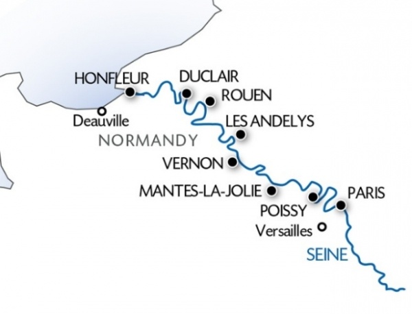 Útvonal: Párizs | Poissy | Mantes | La-Jolie | Honfleur | Rouen | Párizs