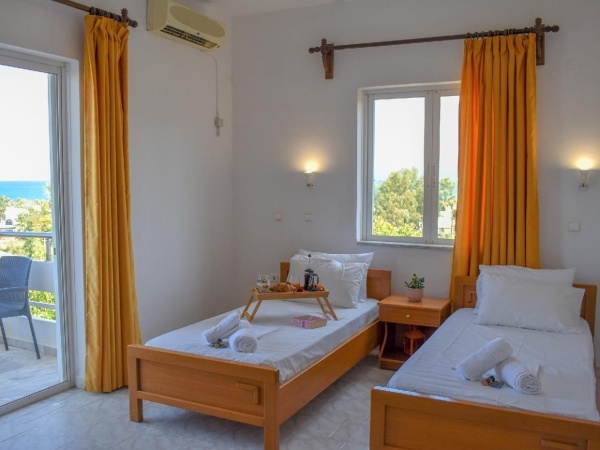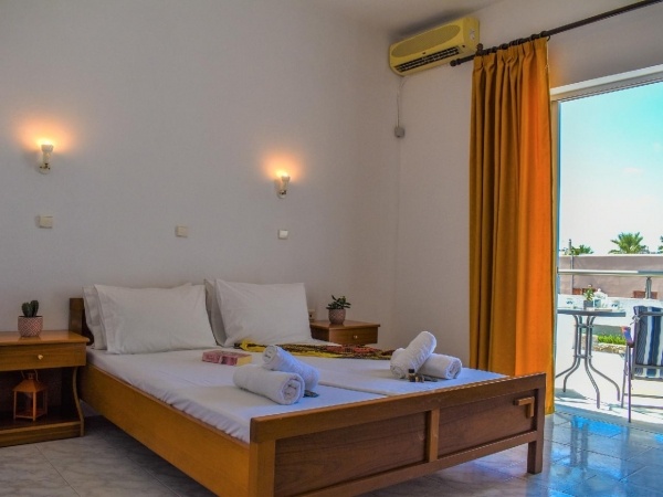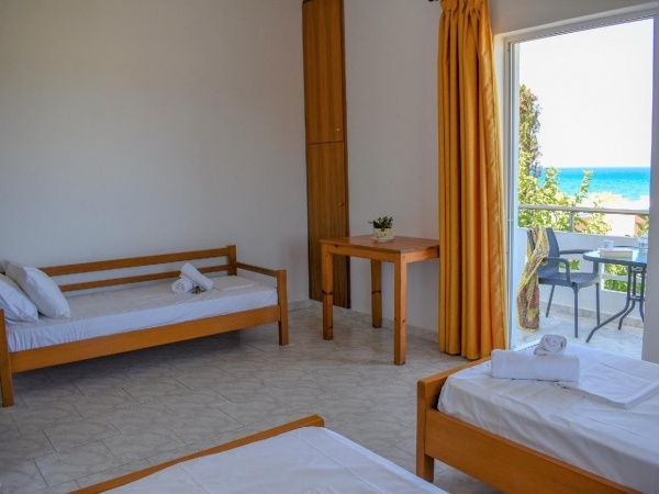 2 és 4 fős emeleti stúdiókban melyekhez konyhasarok, hűtő, fürdőszoba tartozik. Ingyenes WiFi. Klíma felár ellenében kérhető. Minden emeleti stúdióból látni a tengert.