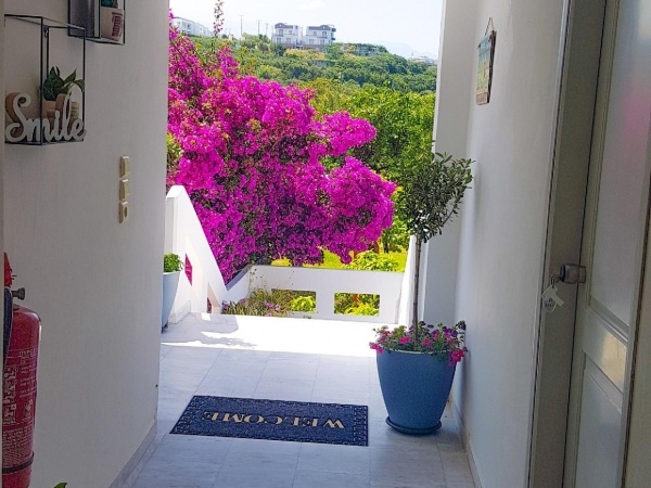 Agia Marina központjában, egy csendes mellékutcában, a homokos tengerparttól kb. 250 méterre található a családias apartmanház. A jó elhelyezkedése, tengeri panorámája és a kedves háziak miatt utasaink egyik kedvence. A főutca, amelyen üzletek, tavernák sora várja az idelátogatókat, csak pár lépésre található a háztól.
