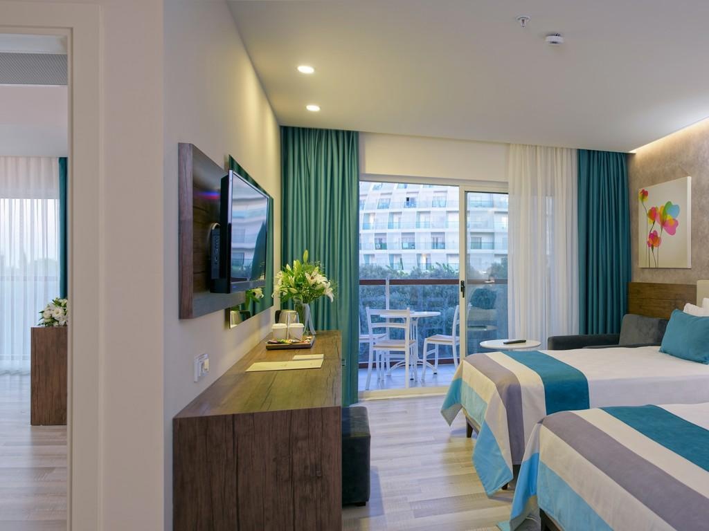 SZOBÁK: 222 szoba o erkély o központi légkondicionálás o hajszárító o TV o telefon térítés ellenében o széf o minibár (naponta vízzel feltöltve) o vízforraló o kávé- és teabekészítés o wifi o standard szobák o superior szobák pezsgőfürdővel o swim up szobák o prémium szobák tengerre néző kilátással o családi szobák