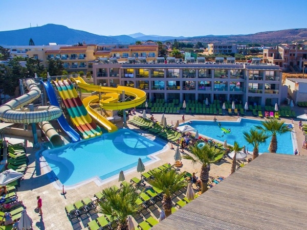 A szálloda közvetlenül Gouves központjában található. Elhelyezkedésének és felszereltségének köszönhetően az aktív pihenésre vágyó utasoknak kitűnő választás. A szálloda három aquaparkkal, csúszdákkal és vízi attrakciókkal várja a különböző korosztályokat. A létesítmény több különálló, elegáns görög stílusban épült épületből áll, és családias légkört kínál. A közelben találhatók a Skotino-barlangok, számos taverne és üzletek. A szállodát minden korosztály számára, de különösen a gyermekes családoknak ajánljuk.