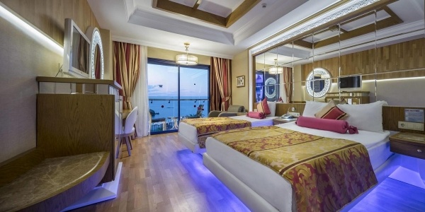 - Ultra All Inclusive: minden étkezés büférendszerben, reggeli későn kelőknek 10:00 és 11:00 óra között, a snack-étteremben 11:30 és 18:00 óra között könnyű snack-ételek, desszertek, gözleme, gofri, kebab és fagylalt, burgerező 19:00 és 21:00 óra között, az átriumbárban 10:00 és 23:00 óra között kávé, tea és üdítők, helyi alkoholos és alkoholmentes italok a lobby-bárban 08.00-24.00 óra között, az átriumbárban 10:00 és 23:00 óra között, a diszkóban 23:00 és 02:00 óra között, a kávézóban 23:00 és 06:00 óra között, a pool-bárban 10:00 és 24:00 óra között, a strandbárban 10:00 és 17:00 óra között, az éjszakai bárban 10:00 és 24:00 óra között, vacsora az a'la carte-étteremben 19:00 és 21:00 óra között (térítés ellenében, előzetes foglalás szükséges). Az Ultra All Inclusive szállodák szolgáltatásai bizonyos részletekben szállodánként eltérhetnek.