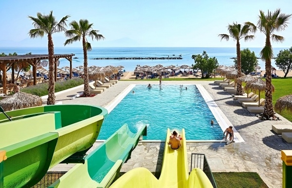 A stílusos szálloda a félsziget nyugati részén található, közvetlenül egy széles, lassan mélyülő, homokos strand mellett. Az elegáns lakóegységek egy hatalmas, dús növényzetű, árnyékos kertben helyezkednek el. A közeli Lakopetrában számos étterem, bár és programok várják a vendégeket. A létesítményben több medence, csúszdák, sportolási lehetőségek, wellness-központ is rendelkezésre áll. Családok, párok és egyedül utazók számára egyaránt ajánljuk.