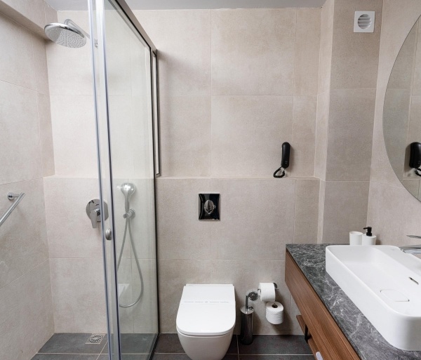- fürdőszoba (fürdőkád vagy zuhanyozó, hajszárító, WC)