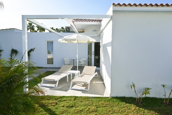 Elhelyezés: o Standard bungaló: Alapterület: 34 m2Kilátás: Kert vagy kert/medence Felszereltség: nappali kanapéval, hálószoba franciaággyal vagy 2 külön ággyal, ingyenes kiságy (kérésre), fürdőszoba (zuhanyzó, hajszárító, pipere termékek), konyhasarok (kis hűtő, mikrohullámú sütő, kávéfőző, vízforraló), széf (felár ellenében), légkondicionálás/fűtés, Smart-TV, terasz.o Superior bungaló: Alapterület: 40 m2Kilátás: Kert vagy kert/medenceFelszereltség: nappali kanapéval, hálószoba franciaággyal vagy 2 külön ággyal, ingyenes kiságy (kérésre),fürdőszoba (zuhanyzó, hajszárító, pipere termékek), konyhasarok (kis hűtő, mikrohullámú sütő, kávéfőző, vízforraló), légkondicionálás/fűtés, széf (felár ellenében), Smart-TV, kertkapcsolatos teraszo Superior stúdió: Alapterület: 30 m2Kilátás: Kert vagy kert/medenceFelszereltség: nappali kanapéval, hálószoba franciaággyal vagy 2 külön ággyal, ingyenes kiságy (kérésre), fürdőszoba (zuhanyzó, hajszárító, pipere termékek), konyhasarok (kis hűtő, mikrohullámú sütő, kávéfőző, vízforraló), légkondicionálás/fűtés (felár ellenében), Smart-TV, teraszo Junior lakosztály - csak felnőttek részére: Alapterület: 42 m2Kilátás: Kert vagy kert/medenceFelszereltség: nappali kanapéval, hálószoba franciaággyal vagy 2 külön ággyal, ingyenes kiságy (kérésre), fürdőszoba (zuhanyzó, hajszárító, pipere termékek), konyhasarok (kis hűtő, mikrohullámú sütő, kávéfőző, vízforraló), légkondicionálás/fűtés, széf (felár ellenében), Smart-TVExtra: gardrób szoba, terasz közvetlen medencekapcsolattal, Wi-Fi elérés az ,,adults only" közösségi területekeno Superior junior lakosztály - csak felnőttek részére: Alapterület: 48 m2Kilátás: Kert vagy kert/medenceFelszereltség: nappali kanapéval, hálószoba franciaággyal vagy 2 külön ággyal, ingyenes kiságy (kérésre), fürdőszoba (zuhanyzó, hajszárító, pipere termékek), konyhasarok (kis hűtő, mikrohullámú sütő, kávéfőző, vízforraló), légkondicionálás/fűtés, széf, Smart-TVExtra: gardrób szoba, privát kertkapcsolatos terasz, privát medence, Wi-Fi elérés az ,,adults only" közösségi területekeno Lakosztály - csak felnőttek részére: Alapterület: 52 m2Kilátás: Kert vagy kert/medenceFelszereltség:külön légterű nappali (kanapéval) és hálószoba (franciaággyal vagy 2 külön ággyal), ingyenes kiságy (kérésre), fürdőszoba (zuhanyzó, hajszárító, pipere termékek), konyhasarok (kis hűtő, mikrohullámú sütő, kávéfőző, vízforraló), légkondicionálás/fűtés, széf, Smart-TVExtra: gardrób szoba, privát kertkapcsolatos terasz, privát medence, Wi-Fi elérés az ,,adults only" közösségi területeken