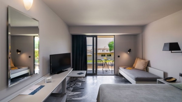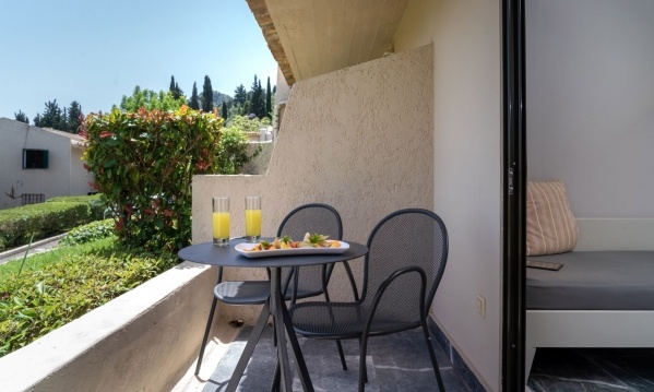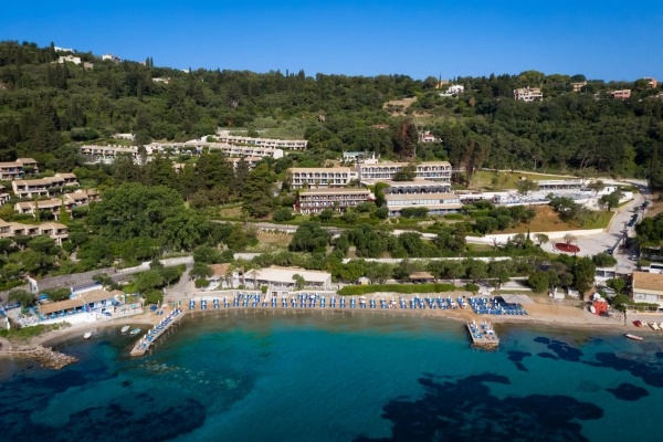 Korfu városától kb. 10 km-re, domboldalon elhelyezkedő, jó minőségű szálloda, mely hatalmas területen helyezkedik el, főépületből és több bungalóból áll. Bár a hotel fekvése gyönyörű, de domboldali elhelyezkedése nehezebben közlekedő utasoknak problémát okozhat.