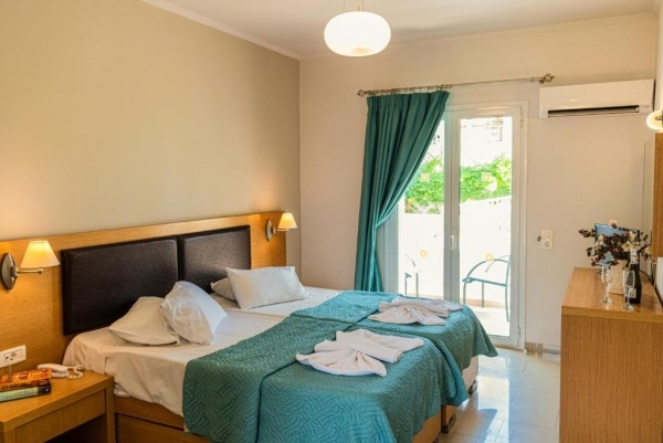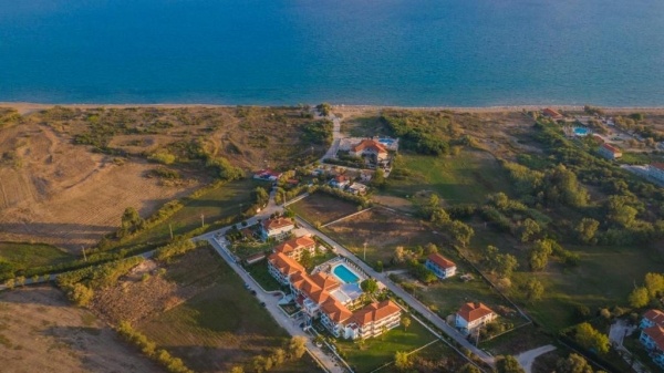 A település csendesebb részén, homokos tengerparttól kb. 300 m-re épült, a központtól kb. 500 m-re elhelyezkedő, háromszintes épületből álló, jó minőségű 3 csillagos, pároknak és családoknak egyaránt ideális szálloda komplexum. Sétányi távolságra (kb. 500 m) tavernák, éttermek, üzletek találhatók