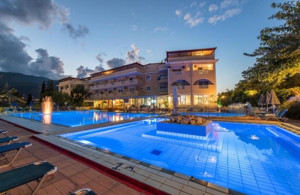 Alykes település nyugodtabb részén elhelyezkedő, kettő/négyszintes, lifttel rendelkező épületekből álló, családias, 94 szobás hotelkomplexum, a homokos tengerparttól és a központtól való távolsága kb. 550 m, ahol tavernák, bárok, kávézók, üzletek, vendéglők találhatók.