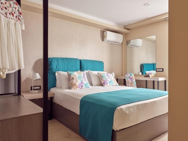 - Kellemesen berendezett, modern, 22 nm alapterületű, kétágyas Chic elnevezésű standard szobában, légkondicionáló, tévé, telefon, minihűtő, strandtörölköző, hajszárító, zuhany, balkon/terasz. A szobák tengerre, medencére, kertre, valamint hegyre nézők is lehetnek.
