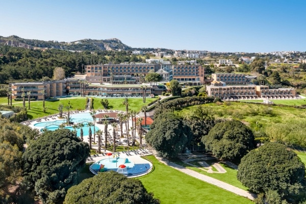 Kalithea településen, 60.000 nm alapterületen elterülő, modern stílusban épült 285 szobás 4 csillagos, több két-háromszintes épületből álló, domboldalra épült szálloda komplexum, fantasztikus kilátással a kalitheai öbölre. Tengerpartig húzódó, hatalmas gondozott kertje pálmafákkal, virágokkal, mediterrán növényekkel van beültetve. Saját kiépített sziklás öbölben elhelyezkedő kis kavicsos/homokos tengerparttal rendelkezik, amelyhez a kerten keresztül, lépcsősoron lehet lejutni, távolsága kb. 300 m.