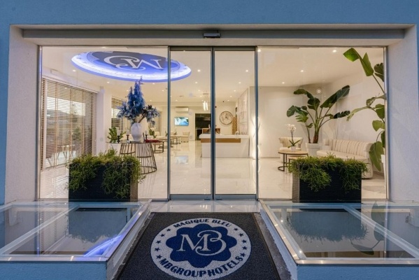 Tragaki településen, zöldövezetben, a homokos/kavicsos tengerparttól mindössze kb. 200 méternyi távolságra, közvetlenül a Mirage Bleu Hotel mellett elhelyezkedő, 70 szobás, 5 csillagos, magas színvonalú szálloda, amely tökéletes választás pároknak, családoknak egyaránt. Mindkét szálloda az MB Group szállodalánc tagjaként üzemel. A legközelebbi supermarket, éttermek, bárok (kb. 100 m), valamint a település központja egy kényelmes sétával (kb. 500 m) elérhető.