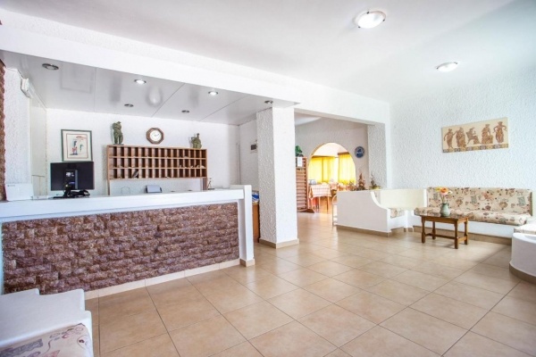 A település nyugodtabb területén, a homokos tengerparttól és a kis kikötőtől kb.350 m-re (Kathara Beach), a központtól kb.800 m-re épült, több kétszintes épületből álló 41 szobás családias hotel, gondozott kerttel, pálmafákkal, virágokkal, mediterrán növényekkel övezve. A közelben, kisebb sétával elérhető tavernák, kávézók, vendéglők, üzletek (szórakozási, vásárlási lehetőségek) találhatók.