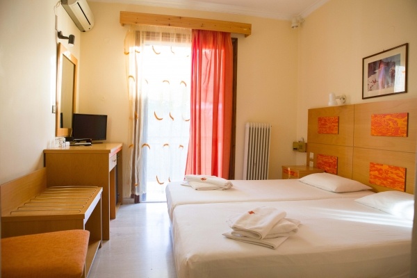 A családi vállalkozásban üzemeltetett hotel kb. 50 méterre a tengerparttól, Nidri központjában fekszik, ahol számos étterem, szupermarket, pékség, bankautomata található.