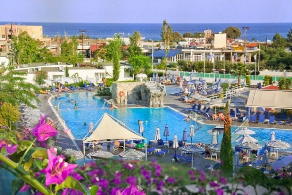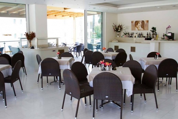 A település központjától egy rövid sétára (tavernák, kávézók, discók, vendéglők, üzletek, kb. 650 m), a homokos tengerparttól kb. 350 m-re épült, két-háromszintes főépületből és mellékszárnyakból álló, 253 szobás színvonalas, modern szállodakomplexum.
