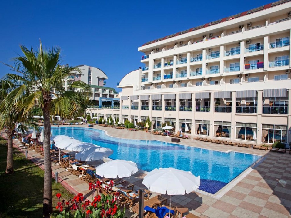 Szállás leírás: Az 5*-os, 2019-ben felújított, összesen 176 szobával rendelkező szálloda kb. 800 m-re Konakli városközpontjától, kb. 12 km-re Alanya városától, kb. 200 m-re a homokos tengerparttól helyezkedik el. A tengerparton sziklás részek előfordulhatnak, javasolt a vízicipő használata!