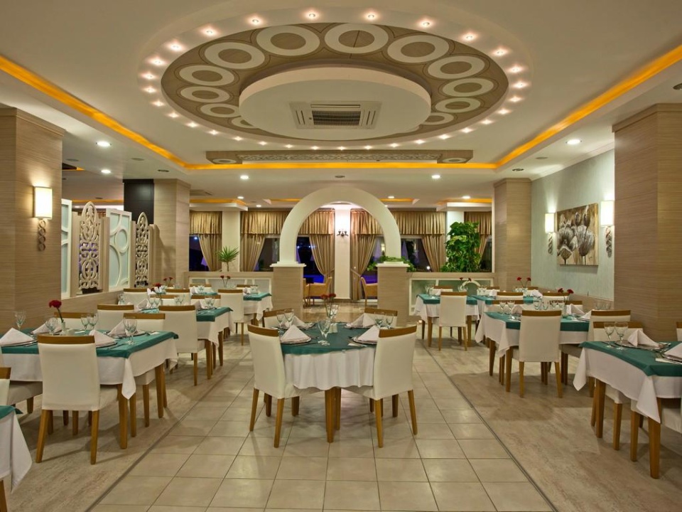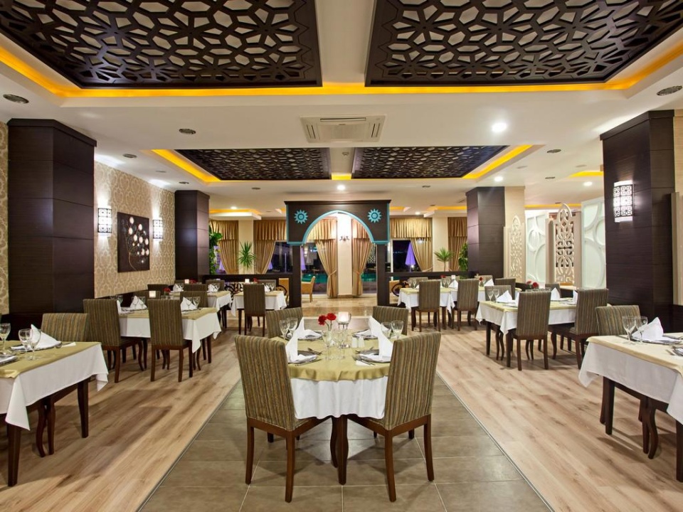 a szálloda központi éttermében, mely nemzetközi és török ételeket kínál.