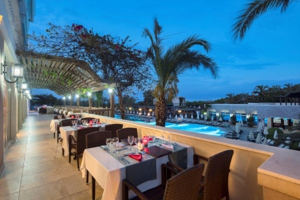- All Inclusive: Reggeli, ebéd és vacsora büférendszerben, késői menü reggeli, késői vacsora (21:00-07:00), napközben snackek, gözleme és fagylalt bizonyos időpontokban, kávé/tea/ sütemények, helyi és néhány import alkoholos és alkoholmentes italok (10:00-00:00), minibár naponta vízzel és üdítőkkel feltöltve.