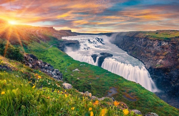 Egész napos kirándulás Izland legismertebb természeti szépségeihez. GULLFOSS a három lépcsőben alázúduló ARANY-VÍZESÉS. A szunnyadó GEYSIR minden gejzír névadója. A STROKKUR gejzír időről időre látványosan tör a magasba. A THINGVELLIR NEMZETI PARK történelmi és földrajzi szempontból is jeles helyszíne az országnak. Itt alakult meg a sziget állama, itt tartották egykor az országgyűléseket is. Szállás Reykjavikban.