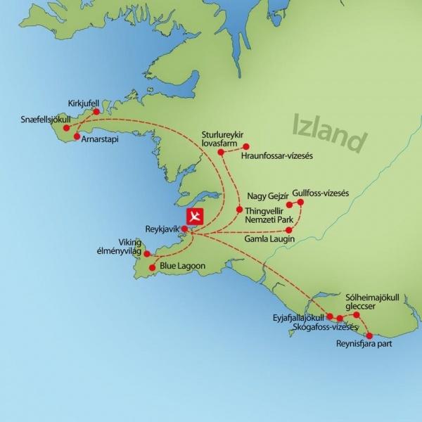 Lenyűgöző vízesések, hatalmas gleccserek és füstölgő gejzírek teszik felejthetetlenné ezt az utazást, ahol a természet minden pillanatban új arcát mutatja. Reykjavík színes házaitól és modern kulturális látnivalóitól a titokzatos fekete lávapartokig, a vadregényes fjordoktól a vulkánokkal tarkított tájakig a program egy igazi kaland. Élvezze a termálforrások gyógyító erejét, sétáljon két kontinens között a Thingvellir Nemzeti Parkban, és merüljön el a viking hagyományok világában. Izland különleges hangulata, a lenyűgöző természeti csodák és az északi vendégszeretet egy életre szóló élménnyé varázsolják ezt az utat