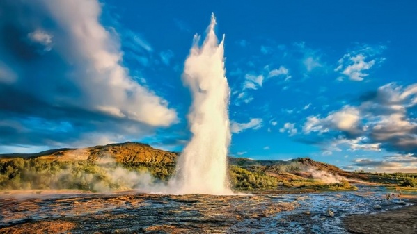 Ez a nap a víz jegyében telik. Először Izland egyik legrégebbi fürdőhelyére látogatunk: a Gamla Laugin, más néven Secret Lagoon, egy kellemesen meleg termálforrás természetes medencével. Ezt követően egy geotermikus gazdálkodóhoz látogatunk el, aki a forró források hőjét gombatermesztésre használja. Az élmény után folytatódik az „éltető víz” felfedezése: a Gullfoss-vízesés 32 méteren zúdul alá, hatalmas erejével lenyűgözve látvány tárul elénk. Míg a Nagy Gejzír évtizedenként egyszer tör ki, „kistestvére”, a Strokkur annál aktívabb: pár percenként akár 20 méter magas vízoszlopot lövell a levegőbe. Ezután visszatérés a hotelbe.