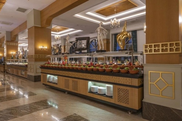 Ultra all inclusive ellátás, mely 00:00- 24:00-ig vehető igénybe és az alábbi szolgáltatásokat tartalmazza: reggeli, ebéd, vacsora a központi étteremben svédasztalos rendszerben, késői reggeli, délután snackek, délutáni tea, kávé és sütemény, fagylalt (meghatározott időszakban), gözleme, éjjeli snack. A bárokban és a főétkezéseknél a helyi alkoholos és alkoholmentes italok, valamint néhány import ital térítésmentesen fogyaszthatók. Bizonyos a'la carte éttermekben térítésmentesen lehet étkezni, azonban előzetes foglalás szükséges. Bizonyos import alkoholos és alkoholmentes italok, prémium kategóriájú italok, török kávé, a frissen facsart gyümölcslevek, valamint fogyasztás az a'la carte éttermekben és a vitamin bárban térítés ellenében állnak rendelkezésre.
