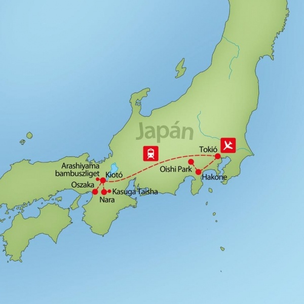 Reggelit követően útra kelünk a természetközeli Hakone térségébe, amely a Tokióhoz közeli hegyvidék egyik legkedveltebb kirándulóhelye, híres látványos tájairól, termálvizeiről és a Fuji-hegyre nyíló kilátásáról. A nap első élménye a Hakone kötélpályás felvonó, amellyel magasba emelkedünk a vulkáni Owakudani-völgy fölé. Ezután egy különleges élmény következik: hajókirándulás az Ashi-tavon, ahol a vízről csodálhatjuk a hegyek ölelésében fekvő tavat, a parton álló torii kaput, ami tipikus japán építészeti elem, és tiszta időben a Fuji-hegyet is. Délután egy rövid fotó szünetre megállunk az idilli Oishi Parkban, ahol virágokkal teli mezők és gondozott kertek alkotnak tökéletes előteret a háttérben magasodó Fuji-hegy panorámájához. Este pedig visszatérés a hotelbe.