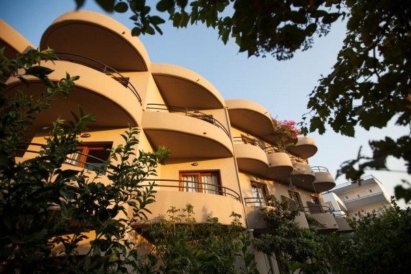 A település viszonylag csendesebb részén, a központtól egy rövid sétára, a homokos tengerparttól mintegy 650 m-re található háromszintes, 21 szobás apartmanház. A közelben kb. 20?800 m mini market, taverna, kávézó található.