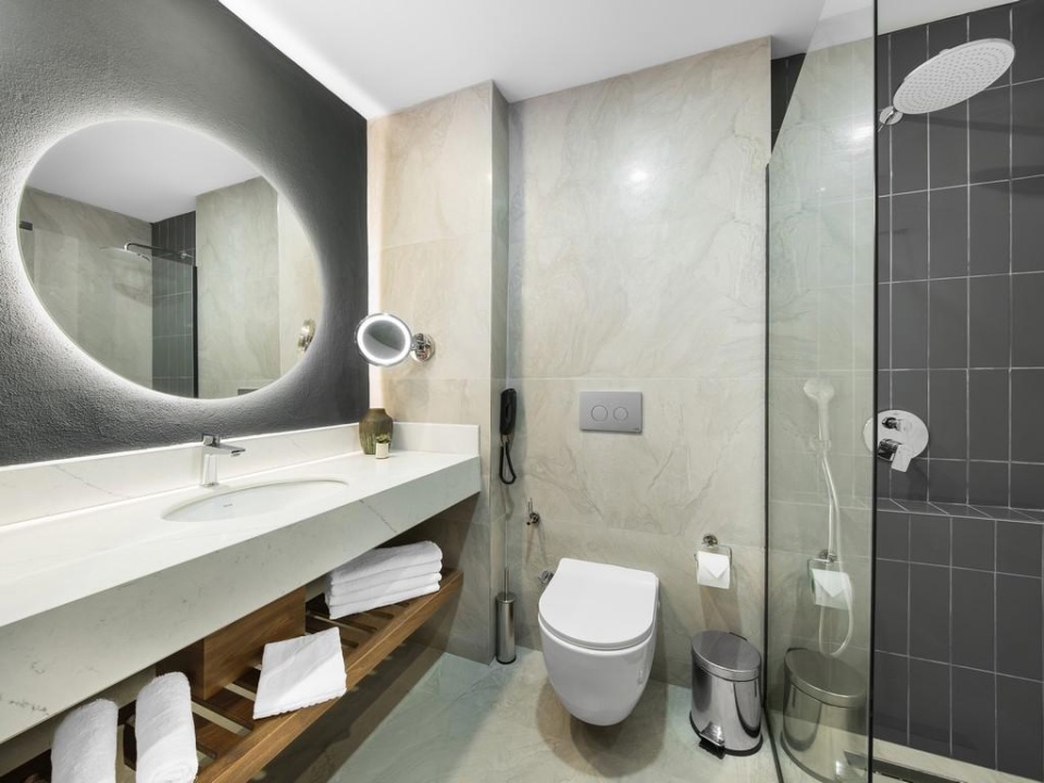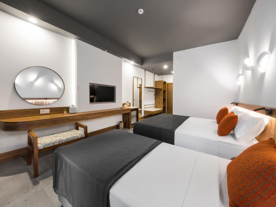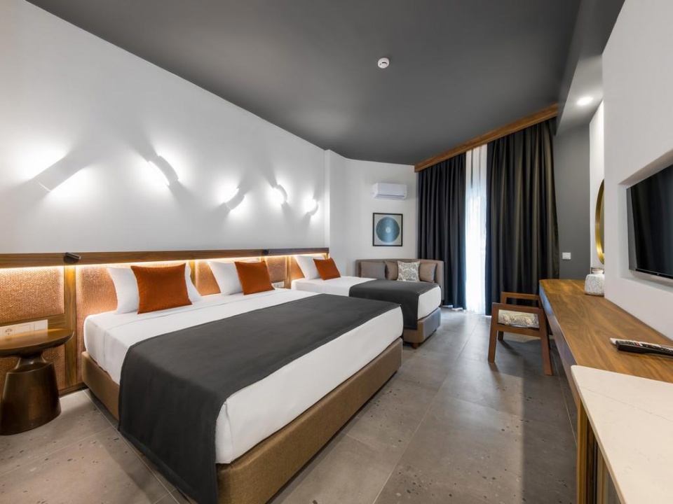SZOBÁK: összesen 327 szoba • erkély • légkondicionáló • hajszárító • telefon • TV • minibár (naponta feltöltve vízzel és ásványvízzel) • kávé- és teafőző készlet • széf • wifi • Deluxe standard szobák: kb. 18-24 m², max. 3 fő, kilátás a tájra, medencére vagy oldalsó tengerre néző kilátással • Deluxe családi szobák: kb. 32-48 m², max. 4 fő, kilátás a tájra vagy oldalsó tengerre néző kilátással