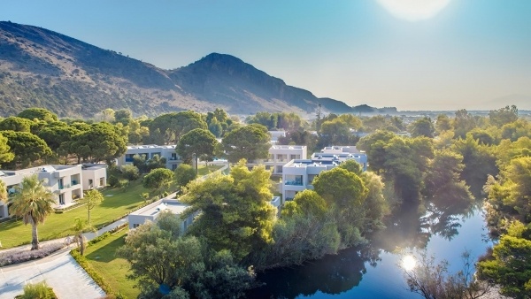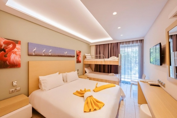 A komplexum a gyönyörű környezetben található, közvetlenül a széles Kalogria homokos strand mellett, amely egy védett természeti terület része, dűnékkel, fenyőerdőkkel és lagúnákkal. A létesítméy egy főépületből és több melléképületből áll, amelyek egy hatalmas kertben helyezkednek el. Animációs és szórakoztató programok, több medence, játszótér, miniklub és számos sportolási lehetőség várja a vendégeket. Lassan mélyülő homokos tsrandja és aqua parkja miatt is ideális választás gyerekes családok számára.