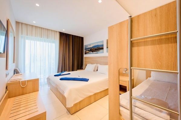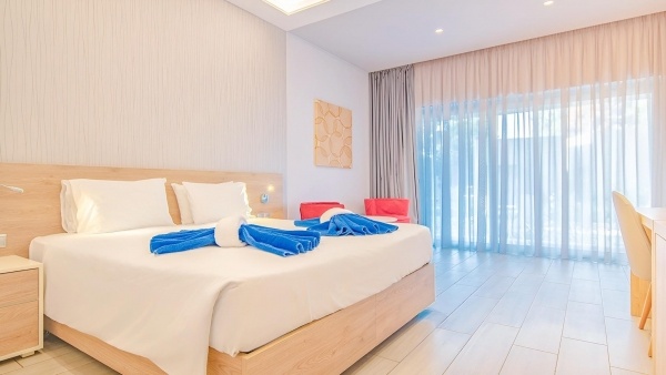 - 3 medence (az egyik csúszdákkal), napágyak és napernyők ingyenesen, törölközők térítés ellenébe