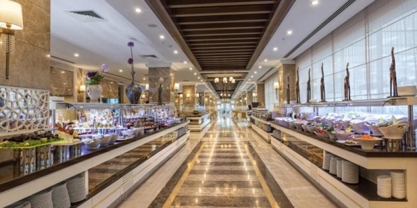 Ultra all inclusive ellátás, mely 07:00-21:00 között vehető igénybe, az alábbi szolgáltatásokat tartalmazza: reggeli, ebéd, vacsora a főétteremben svédasztalos rendszerben, késői reggeli, délutáni snackek, délutáni kávé, tea, sütemények, fagylalt (meghatározott időszakban), éjjeli snack (23:00-00:00). A főétkezéseknél és a bárokban a helyi alkoholos és alkoholmentes italok, tea, kávé térítésmentesen fogyasztható 10:00-24:00 óra között. Az import italok, prémium kategóriájú italok, frissen facsart gyümölcslevek, az a'la carte éttermek szolgáltatásai térítés ellenében állnak rendelkezésre.