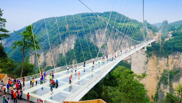 8. nap o Zhangjiajie - Sanghaj A terület további felfedezése, látnivalók: a Tianmen hegy, a 430 m hosszú üveghíd, mely 300 m mélység fellett ível át, majd a sziklaoldalba épített üvegjárda a Szellemek völgye felett, később a Tongtian szerpentin, majd a Tianmen barlang felkeresése felvonóval. Transzfer a repülőtérre és késő esti utazás Sanghajba. Egy éjszakai szállás reggelivel Sanghajban.
