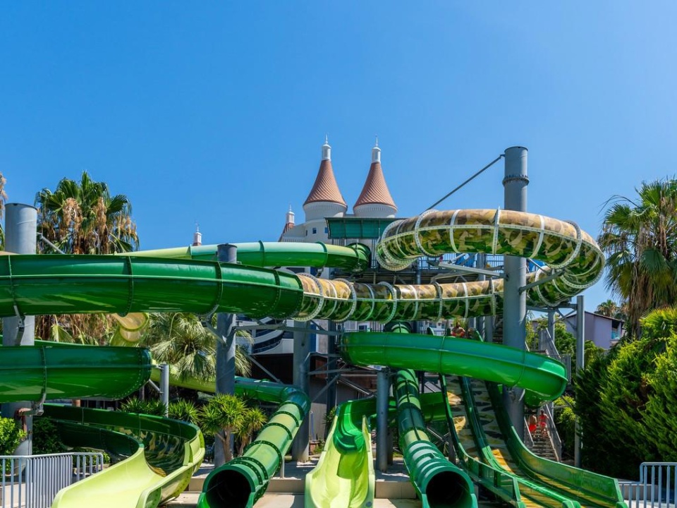 Tengerpart, medencék és aquapark: közvetlen, homokos-kavicsos tengerpart, szabadtéri medencék, fedett medence, napozóterasz, vízicsúszdák