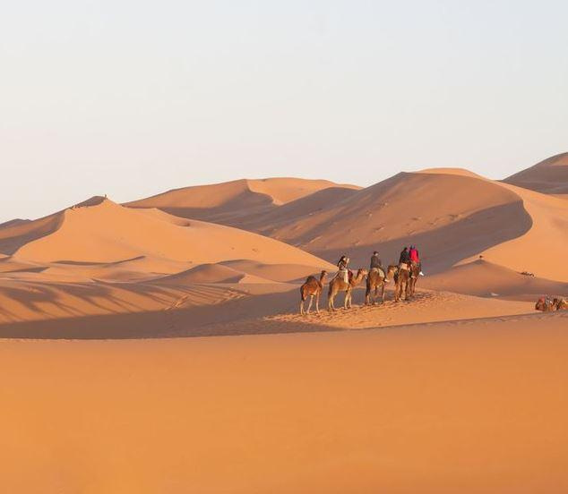 Ezen a napon déli irányba indulunk, átkelünk az Atlasz-hegységen a Szahara irányába. Az első megállónk Ifrane, a marokkóiak 1660 méter magasan fekvő üdülővárosa. A hely különlegességét az adja, hogy Ifrane jobban emlékeztet egy európai városra, mint egy marokkóira. Ennek oka, hogy a várost még a francia gyarmatosítók alapították a XX. század első felében.Később az Atlasz-hegység déli oldalán, a Ziz folyó látványos völgyében ereszkedünk lefelé, a táj egyre sivatagosabbá válik, míg végül a délutáni órákban megérkezünk a Szaharába, Merzouga szállodatelepülésre, Erg Chebbi látványos homokdűnéihez. A dűnék magassága akár a 150 métert is meghaladhatja. (Összehasonlításképpen Budán a várhegy 60 méter magas.) A késő délutáni órákban elsétálhatunk a homokdűnékhez, de fakultatív tevegelésre (kb. 25 EUR/fő) vagy terepjárózásra (kb. 25 EUR/fő) is lesz lehetőség. Szállás Merzougában (1 éj).