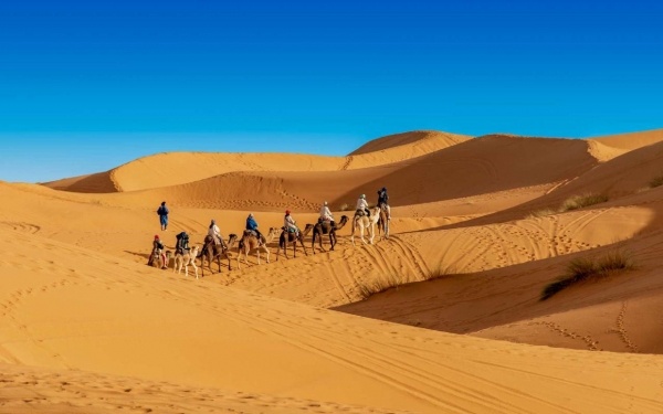 Reggeli után, továbbutazás Rissaniba, amely a jelenlegi királyi uralkodó család, az Alaouite dinasztia származási helye. A városban egy nagyon érdekes ősi leleteket (fosszíliákat) feldolgozó üzem meglátogatása. A következő állomás már a sivatag, megérkezünk Merzougába! A tábor felfedezése és a komfortos sátrak elfoglalása. Kora délután egy fakultatív, 3 órás dzsiptúrán van lehetőség részt venni (8 000 Ft / fő), a homokdűnék felfedezésével! Később egy igazán authentikus élmény következik, tevegelés a sivatagban, a naplementében! A szálláshelyre visszatérés után műsoros est, a tábortűz mellett.