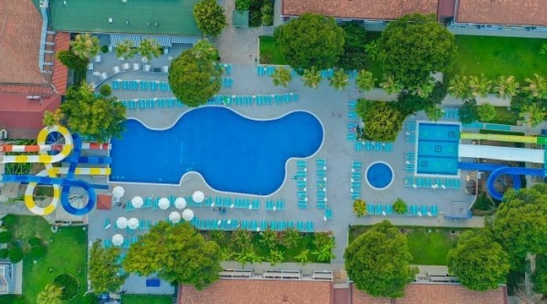 SZOLGÁLTATÁSOK: kültéri medencék napernyőkkel és napozóágyakkal o beltéri medence o vízicsúszdák o főétterem o bárok (lobby, medence, tengerparti) o animációs programok o esti showműsorok o élőzene o diszkó o fitneszterem o asztalitenisz o reggeli torna o step aerobik o minifoci o vízilabda o vízi torna o boccia o darts o strandröplabda o szauna o törökfürdő o wifi