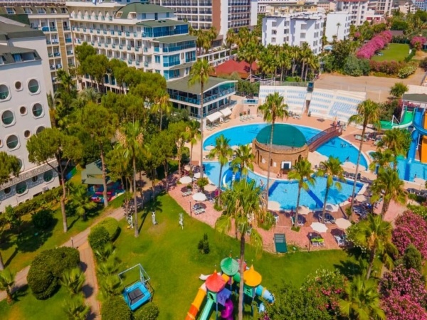 SZOLGÁLTATÁSOK: kültéri medencék napernyőkkel és napágyakkal o beltéri medence o csúszdák o főétterem o bárok (lobby, medence, tengerpart...) o cukrászda o napi és esti animációs programok o élőzene o karaoke o fitneszterem