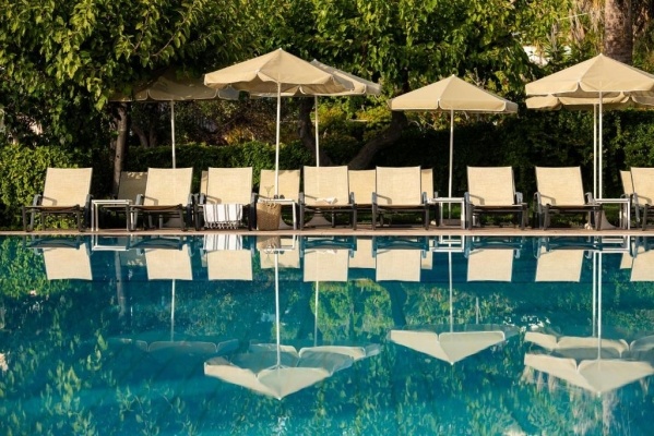 Lassi főutcájától kb. 100 m-re található, közvetlenül a homokos tengerparton (saját strand) fekszik a 226 szobával rendelkező szálloda