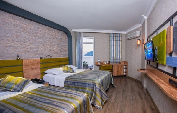 SZOBÁK: 181 szoba o erkély o egyénileg szabályozható légkondicionálás o hajszárító o minibár (érkezéskor vízzel feltöltve) o TV o széf térítés ellenében o vízforraló o wifi o Cozy szobák - C blokk: kb. 18-24 m?, max. 3 fő részére o Komfort szobák kertre néző kilátással - B blokk: kb. 14-16 m?, max. 2 fő részére o Komfort szobák tengerre néző kilátással - B blokk: kb. 16-20 m?, max. 3 fő részére o Superior szobák oldalirányú tengerre néző kilátással - A blokk: kb. 15-22 m?, max. 3 fő részére o Superior szobák tengerre néző kilátással - A blokk: kb. 15-28 m?, max. 3 fő részére
