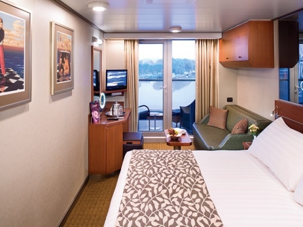 Balkonos kabin: (19-35 nm, balkonnal): az elegánsan berendezett kabinok franciaággyal (kérésre két külön ággyá alakítható), széffel, hajszárítóval, minibárral, légkondicionálóval, telefonnal, lapos képernyős TV-vel felszereltek. A kabinokban luxus frottír fürdőköpeny, egyiptomi pamut törülközők, elegáns jégtartó, a fürdőszobákban masszázsfejes zuhanyzó, kád Elemis Aromapure tusfürdő, krémek, és sampon található.