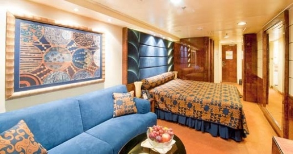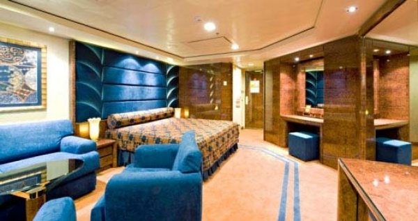 Yacht Club Deluxe lakosztályok: 23 - 29 nm közöttiek, +a balkon 4-6 nm, Légkondicionálóval, tágas gardróbbal, TV-vel, minibárral (feláras), széffel, wifivel (feláras), telefonnal, hajszárítóval felszereltek. A fürdőszobában kád van.