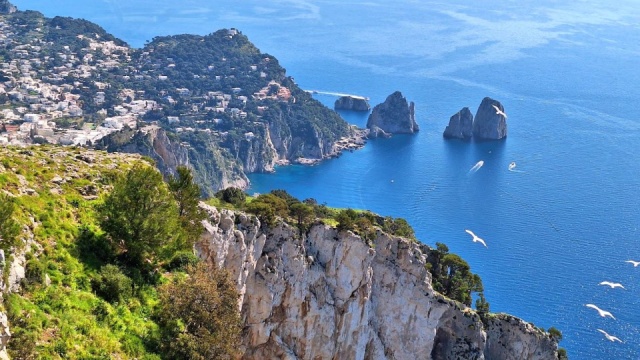 Egész napos kirándulás Capri szigetére. A Szirének Földjén járva ma egy felejthetetlen hajókirándulásra indulunk a Nápolyi öböl leglátogatottabb, legendás szépségű szigetére, a mesés Caprira. Enyhe éghajlata, buja növényzete és vad partjai évszázadok óta vonzza ide a turistákat. A kis sziget nemcsak természeti szépségekben, de történelmi emlékekben is nagyon gazdag. Tiberius császár több villát is építtetett itt, s egy időben a hatalmas Római Birodalmat is innen igazgatta. Augustus császár pedig a "dolce far niente", azaz édes semmittevés szigetének nevezte Caprit, a Nápolyi-öböl kis szigetét, mely a világ egyik leglátogatottabb úticélja. Az Axel Munthe villa megtekintése után libegőzési lehetőség a sziget legmagasabb pontjára, ahonnan csodálatos kilátás nyílik az egész Nápolyi-öbölre. Capri városában Augustus császár kertjéből fotózhatjuk a Faraglioni sziklákat. Szabadidőben lehetőség van sziget körüli hajókázásra, vagy látogatás egyénileg a Kék-barlanghoz. Capri gyönyörű kis pasztellszínű házaival, kacskaringós, szűk kis utcácskáival, tereivel garantáltan magával ragadja a látogatókat. Érdemes megkóstolni a citromos csokoládét, a citrompálinkát és a helyi limoncellot is. Visszautazás a kikötőbe a kora esti órákban. (Ár: 95 EUR/fő - az ár tartalmazza a transzfert a kikötőbe, a hajójegyet, a közlekedést Capri szigetén bérelt autóbuszokkal, az idegenvezetést helyi idegenvezetővel és a belépőt az Augustus kertbe.)
