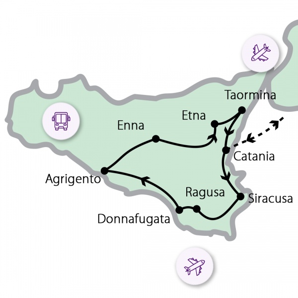 A reggeli órákban elrepülünk Cataniába. Érkezést követően egyből Siracusába buszozunk. Óvárosa az Ortigia-szigeten fekszik, itt található a Piazza Duomo hatalmas tere. Látni fogjuk a Fonte Aretusat is, mely egy híres forrás. Négy híres tere páratlan látványosság a csodás épületeivel. Siracusából Ragusába utazunk. A város Val di Noto fennsíkján található, kimagasló barokk építészete miatt szintén az UNESCO Világörökség része. Ragusa domboldalra épített utcáin sétálva csodás kilátás nyílik a környékre. Városnézésünk során megkóstolhatjuk a szicíliai gasztronómia ékének számító arancinit (töltött rizsgolyó) vagy a helyi sajtokat is. Esti sétánk során gyönyörködhetünk a karácsonyi fényekben. Szállásunk Ragusában lesz.