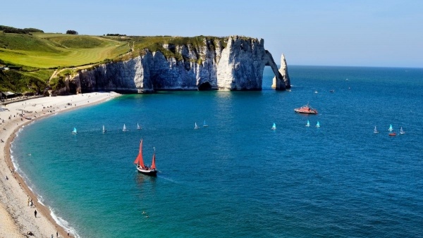 2. nap o Rouen - Etretat - Honfleur - RouenReggeli után elutazás az Etretat-ba, amely lenyűgöző, fehérben pompázó mészkőszikláiról lett ismert, és látogatás a sziklák tetejére telepített modern művészeti panorámás kertben. Rövid séta után utazás a Szajna-delta legnagyobb fesztávú hídján Honfleurbe, Normandia legszebb halászfalujába. A településen a 19. században sok művész és író tartózkodott, köztük Baudelaire, Boudin és Monet. Látogatás a XV. századi, Franciaország legrégebbi fatemplomában, a Sainte Catherine-ben, majd szabadidő a macskaköves utcák, galériák, kávézók övezte pezsgő életű városban. Szállás Rouen környékén.