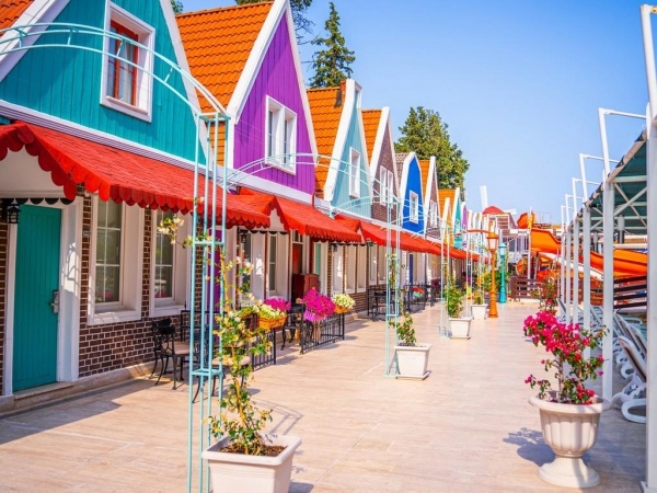 SZOLGÁLTATÁSOK: medence napernyőkkel és napágyakkal o beltéri medence o csúszdák o főétterem o bárok (lobby, beach...) o animációs programok o élőzene o fitnesz o vízilabda o gimnasztika o vízi játékok o törökfürdő o szauna o gőzfürdő o térítés ellenében: SPA és wellness központ o masszázs o peeling o törökfürdő kezelések o orvosi szolgáltatás o mosoda o szépségszalon
