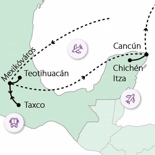 Délelőtt indulás Budapestről és átszállással utazás Mexikóvárosba. Érkezés után transzfer a szállodába (3 éj). Ezen a napon nincsen fakultatív vacsora.